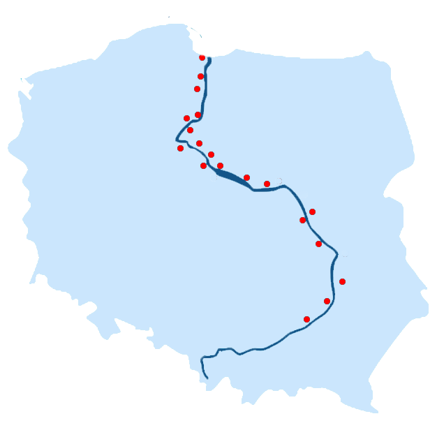 TCZEW GDAŃSK GNIEW GRUDZIĄDZ TORUŃ CHELMNO POŁANIEC SANDOMIERZ ANNOPOL PUŁAWY KOZIENICE GÓRA KALWARIA KARCZEW ŁOMIANKI ZAKROCZYM WYSZOGRÓD CIECHOCINEK DOBRZYŃ SOLEC KUJAWSKI NIESZAWA WŁOCŁAWEK PŁOCK